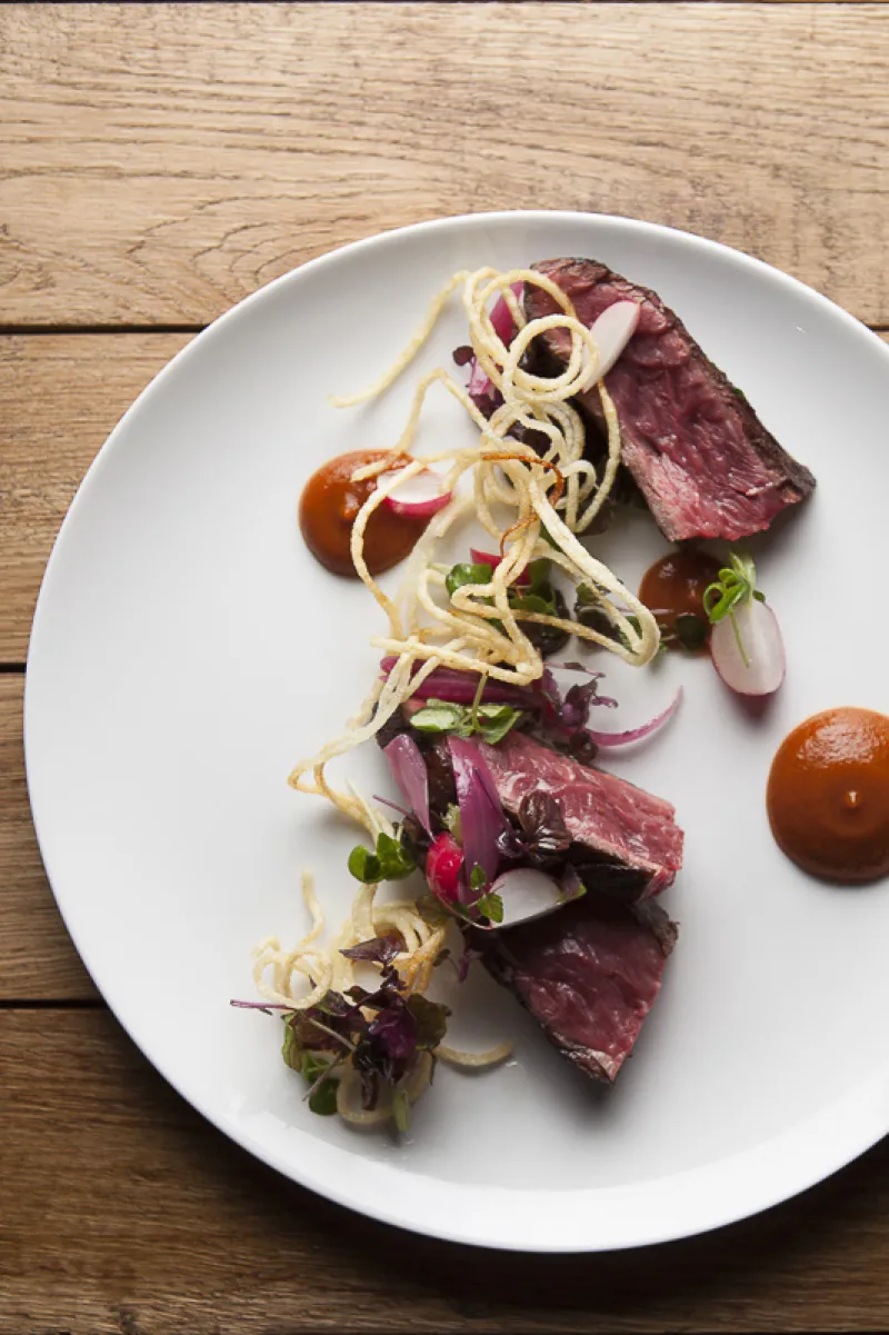 Côte de bœuf du Mézenc, sauce Ssamjang, champignons au vinaigre et fils de pomme de terre pour Manon Genest - Para triathlète, championne du monde en 2016